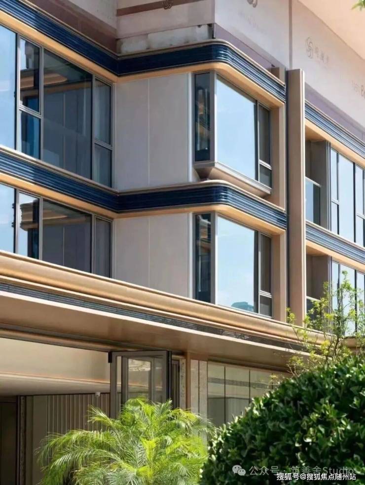 鸣澜里的建筑立面设计颇具匠心,四面铝板、造型格栅与大面玻璃幕墙的精妙设计,辅以深灰基座与鎏金窗框的点缀,构筑出沉稳大气的风格,赋予建筑轻盈漂浮的视觉感受。通过打磨建筑单体的圆角弧度,不仅丰富了层次感,更营造出通透开阔的空间意境,引领未来审美新风尚。