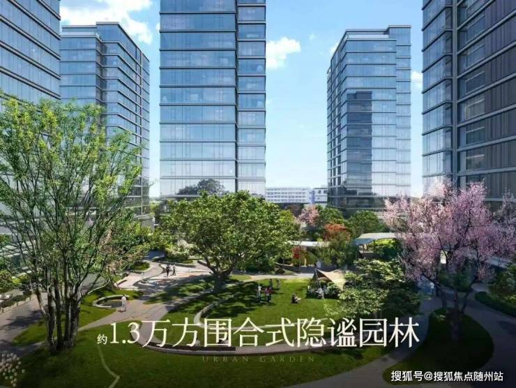 整个园区以围合式布局展开,七幢建筑借鉴中国古典园林的精髓,点状排布,最大楼间距达到了63米,使得每栋楼都能享受到270°的开阔视野,仿佛是一座座隐匿于花园中的岛屿。
