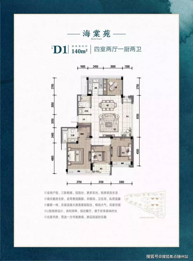 高层送精装修(硬装含中央空调+地暖+软装全配)约4000元/平标准)