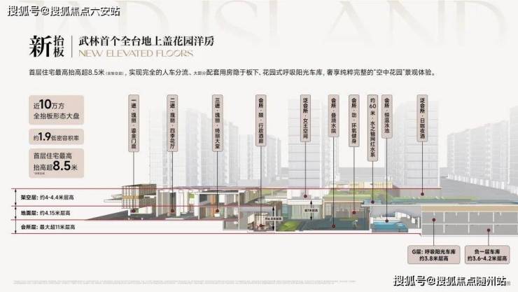 城市更新封面:首层住宅最高抬高约8.5米(含架空层),配置近3000㎡城市花园会客厅约60米长瑰丽门庭,链接城市与社区、自然与生活。