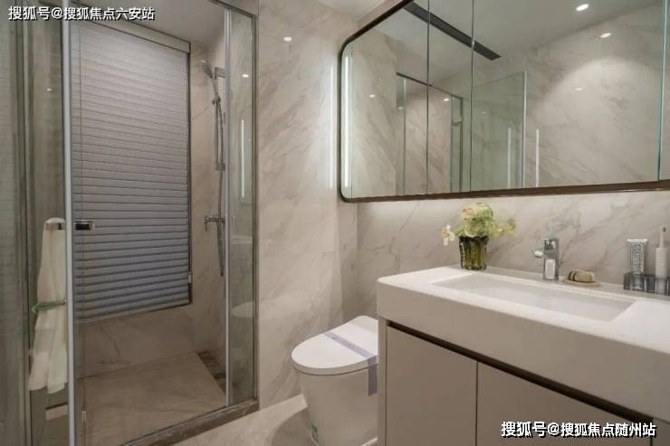 在精装方面,客餐厅地面选用大理石铺贴,厨房配备四件套与蒸烤一体机。卫生间洁具采用汉斯格雅、唯宝、摩恩等一线品牌,台盆台面及地面均运用大理石材质,整体营造精致高端的居住体验。