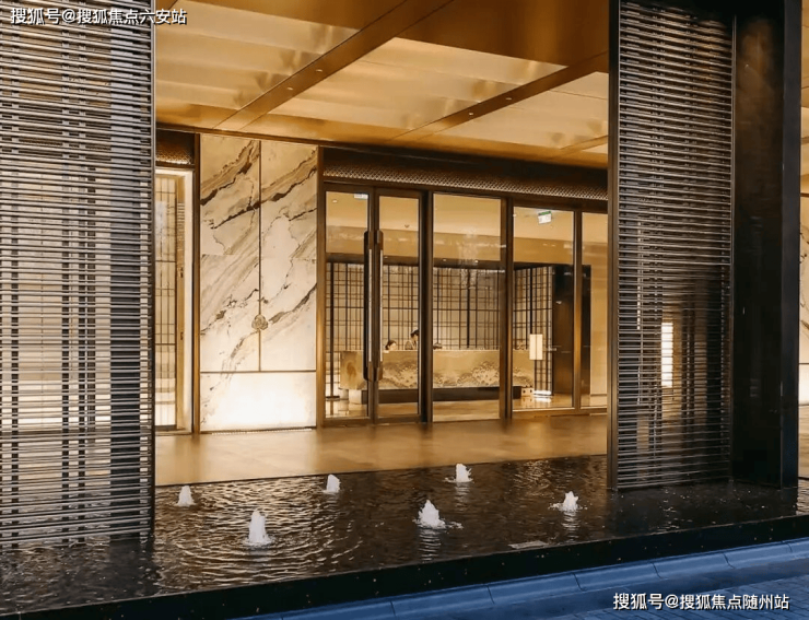 地库连接着会所,入口的玄关充满仪式感,水景结合天光、月光灰的石材背景和地面的马蹄石营造出一种古朴自然的氛围。它的归家动线也十分考究,传统的地库大堂进来后直接到达电梯厅,而瑞玺则是做了一段具有艺术氛围的过渡空间让归家的心绪先沉淀下来,实现外部喧嚣到居家宁静的完美切换。