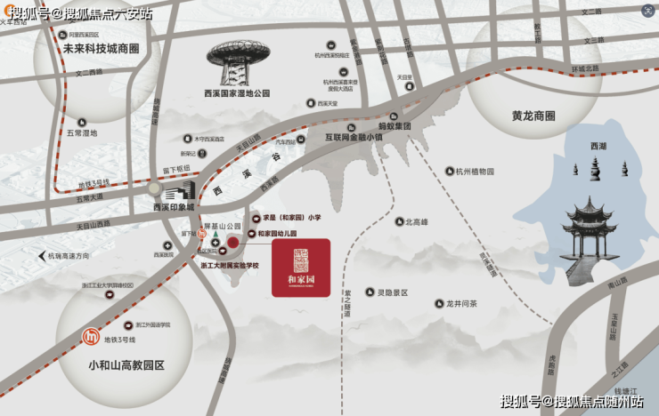 项目位于西湖区核心腹地,兼具城市繁华与自然静谧双重优势。交通网络四通八达,快速连接武林商圈、黄龙商务区与未来科技城,通勤效率远超远郊低密项目。
