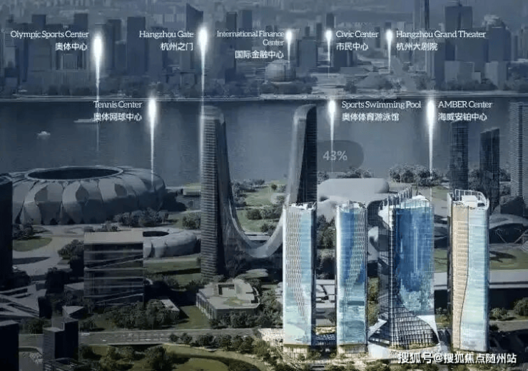 建筑设计 荷兰UNStudio事务所操刀,以“天幕聚落”为理念,玻璃外墙呼应杭州丝绸文化,塔楼呈流线型地标