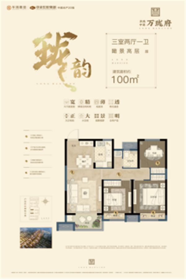 万珑府位于宿豫区九龙江路万达广场南侧,与庐山路小学一路之隔,作为宿豫区核心板块,拥有城市最高级的商业和学区配套,多路公交系统快速链接中心城区。 产品采用新亚洲建筑风格,内部多重园林,五进归家礼仪,并配备慢跑道、儿童主题乐园、宅间会客厅等;户型方面:全明户型设计南向三开间起步,洋房和高层L形布局保证整体的通风采光,以及每户观景效果;
