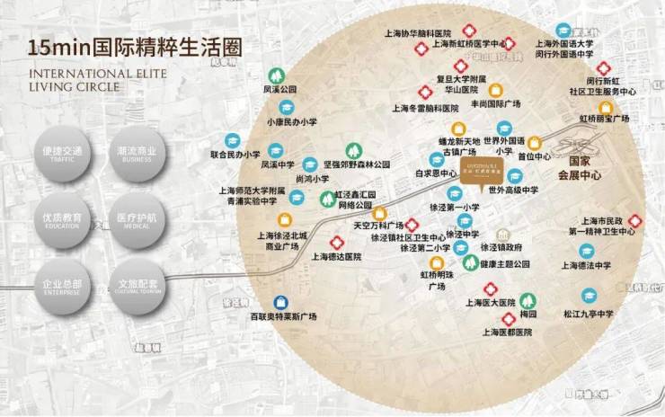 优质教育:上海中学(9年制,在建中)、青浦世界语外国学校(15.5年制 从托班到高中)、徐泾中学、徐泾小学、徐泾幼儿园、世蒙幼儿园、西华国际学校、美国学校、英国学校、新加坡国际学校、台商子女学校等(非学区承诺,具体以政府官方信息为准);