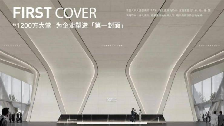 宁波中心大厦首层大堂层高约13.7米,大堂南北进深约13米,东西面宽约11米,大堂总面积约1200平方米,地墙顶设计均采用石材一体化,整体空间旷达、视野开阔,成为企业的身份名片。