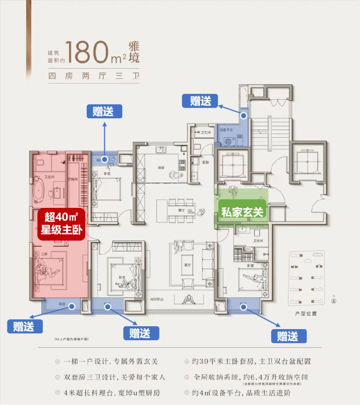 包括市面上不常见的一梯一户、超配设备平台、双套房三卫生间设计等等,从空间到功能,堪称昆山大平层里的教科书