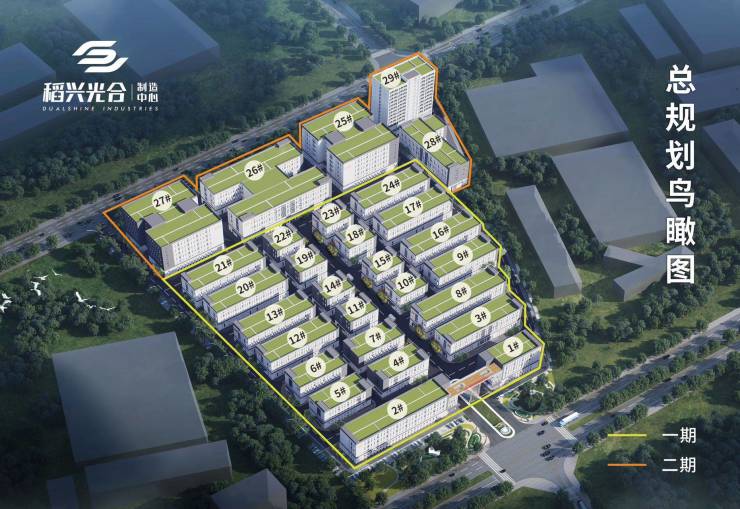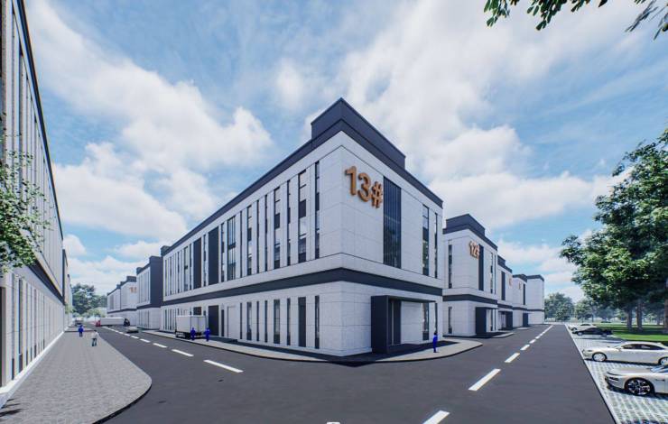 项目产品:项目占地142亩,建筑面积约16万方,总共29栋建筑,其中:28栋厂房,1栋公寓,园区容积率2.1,绿地率6.85%,建筑密度41.56%。外墙水包砂材质。