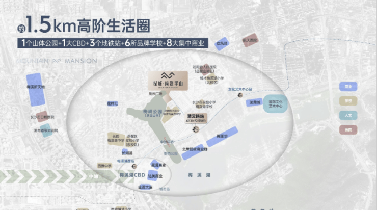 项目位于梅溪湖国际新城一期核芯地段,众所周知,梅溪湖不仅自然环境优胜,而且生活氛围十分浓厚。梅溪半山更是紧邻约367亩的梅岭公园,四周被清新的自然鲜氧环绕,生态环境十分优越,宛如城市中的一片绿洲,为居住者提供了亲近自然、享受静谧生活的绝佳条件。