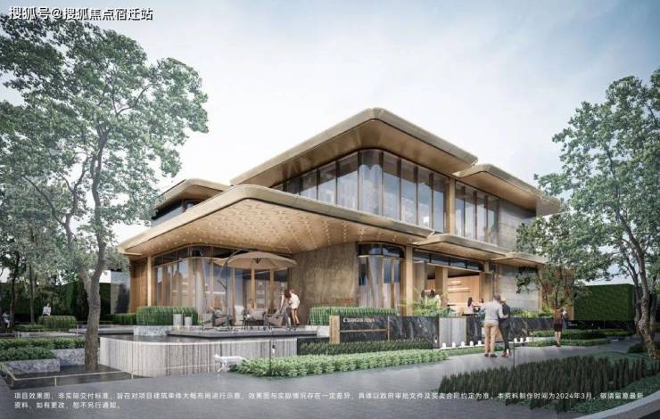 社区建筑以现代简约的风格,搭配有序的横线线条,打造有韵律感的大框秩序,米白色为主并搭配一定香槟金暖色调,创造和谐城市色彩。并利用大面积玻璃设计,通过分段式化解建筑尺度,丰富造型,提升昭示度。