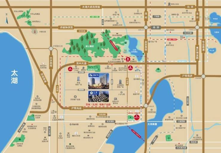 【15分钟吴中市区,30分钟园区市区】项目西沿吴中大道三分钟上中环西线,苏福快速路,南环高架直达市区,苏州三大高铁站极为便利