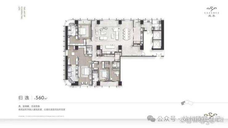 当踏入兆丰Essence的那一刻起,您将被一种难以言喻的奢华所包围。560-730㎡(以730㎡展示区为例进行阐述)三款户型,每一款都是对生活美学的极致探索。特别是那建面约730㎡的展示区,由春山秋水匠心设计,仿佛步入了一个梦幻般的艺术殿堂。