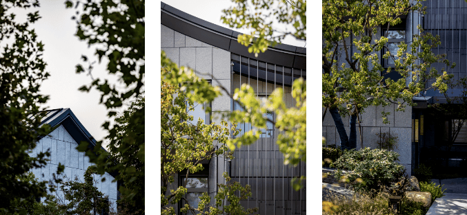 涵云轩的建筑在尽可能范围内,吸收江南院落的坡屋顶、白墙灰瓦、山水景墙等中式风骨,放眼望去,见阳光洒下、韵律辉映,将周围青山绿水映衬出更浓郁的自然之色,绿与白,深浅相照,自然与建筑,完美交融。
