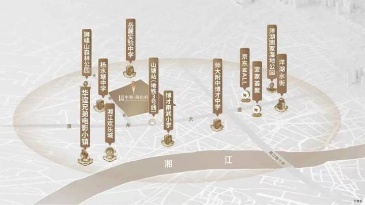 周边汇聚博才雨润、师大附中、麓山实验等多所知名学校资源;另外,被称为“一座没有天花板的未来之城”湘江科学城也近在咫尺。