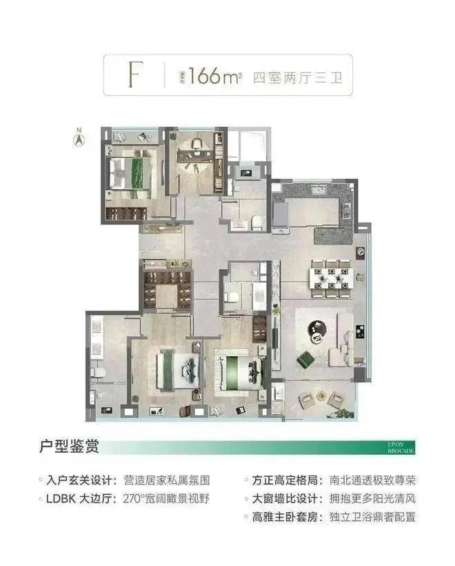 建面约166㎡四房户型图▼
