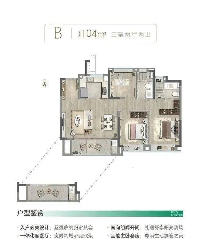 建面约104㎡三房户型图▼