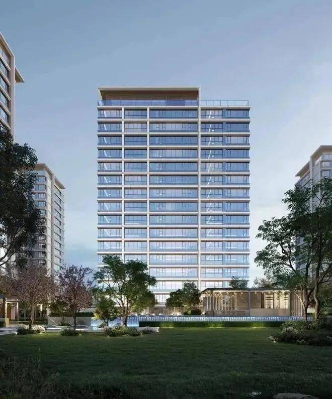 【建筑风格】现代简约风,外立面采用大面积玻璃加铝板,打造非对称L型立面,材质造价更高,抗腐蚀性程度更高。