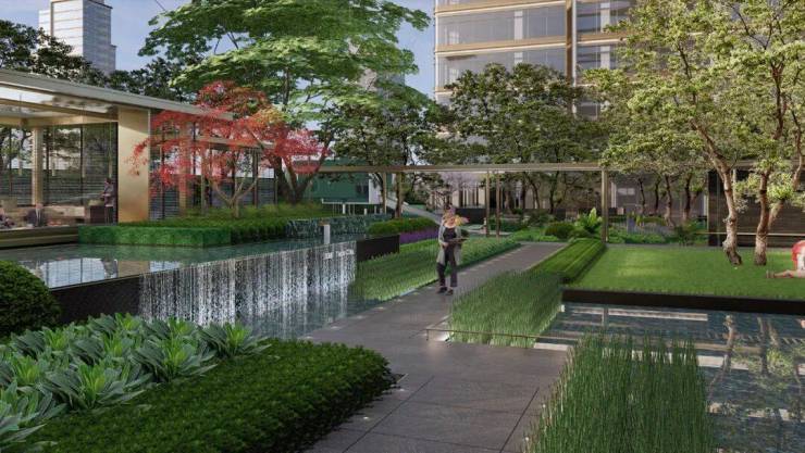 园林还以曼谷湄南河四季酒店为灵感,做出了连绵的水街、漫步道、屋顶花园……构建出“立体山水”的自然景致。