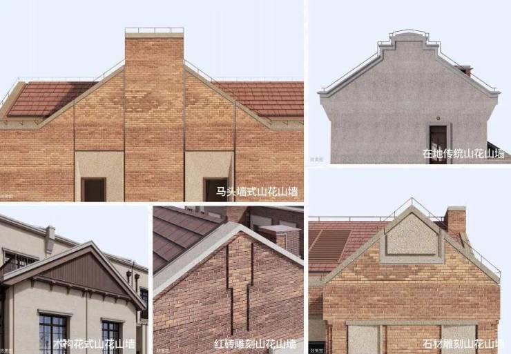 针对墙面,项目汲取老城厢、三益里等建筑山花装饰语言,创新演绎出5种山花山墙,重新定义海派建筑之美。