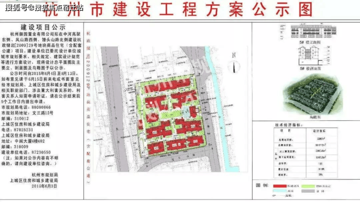 2015年,御园项目重启;彼时,杭州市规划局网站挂出御园地块的建设项目批前公示规划,将法式别墅更改为中式合院,容积率也从1.4降到1.01。