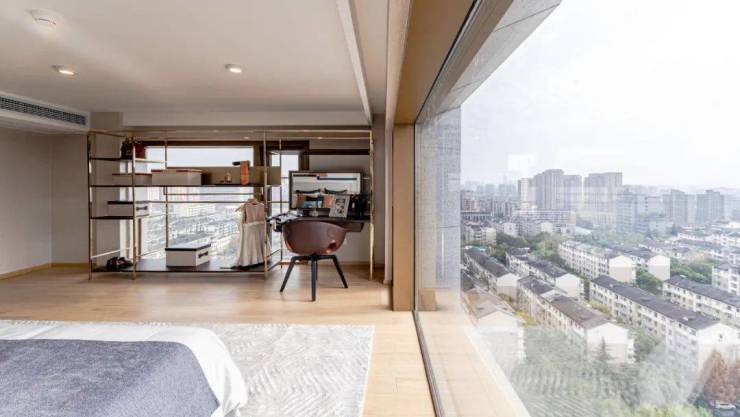更赞的是,部分户型还有一个室外的空间,可以玩花弄草、仰望星空,吹一吹来自西湖的微风。约4.77米的层高,1米8的个子,在上下两层来回穿行,也不会觉得压抑。而且,因为是loft,这也大大提高了得房率。与一些小户型住宅相比,空间感要大很多。