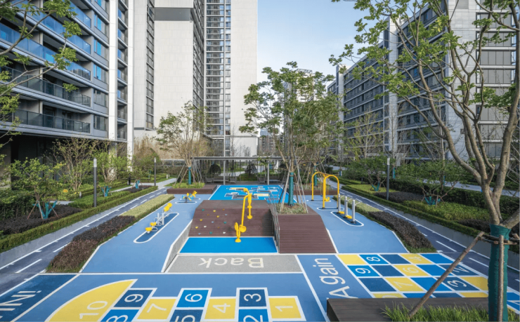 一环是小区内约500米长的归家漫步环路,也可以成为清晨或晚饭后健身挥汗的漫步道。