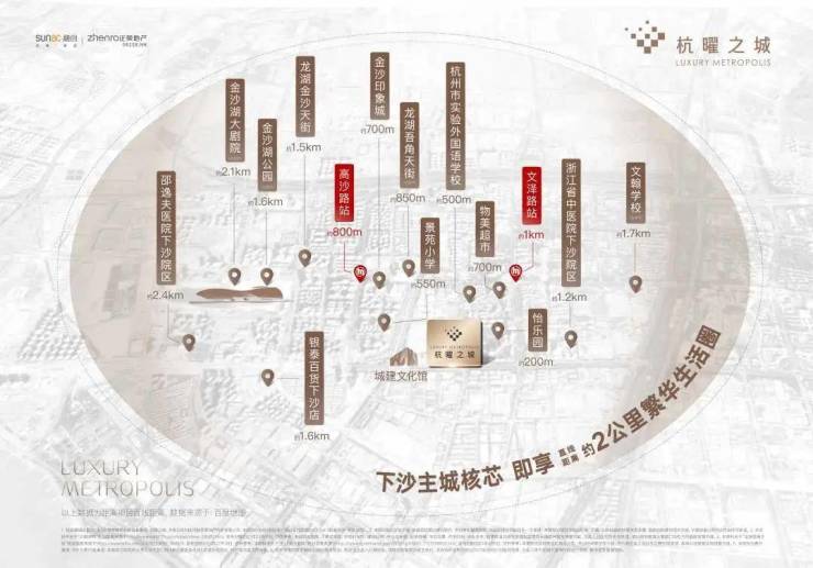 不仅如此,项目直线距离两公里内还有两大三甲医院护航健康,两大人文地标“杭州小三亚”金沙湖公园(二期在建中)+金沙湖大剧院(在建中)休憩娱乐,四大商圈+三线地铁(规划)+两大三甲医院+两大人文地标的配置,形成一股强大磁场,更加繁华便捷的下沙即将到来。