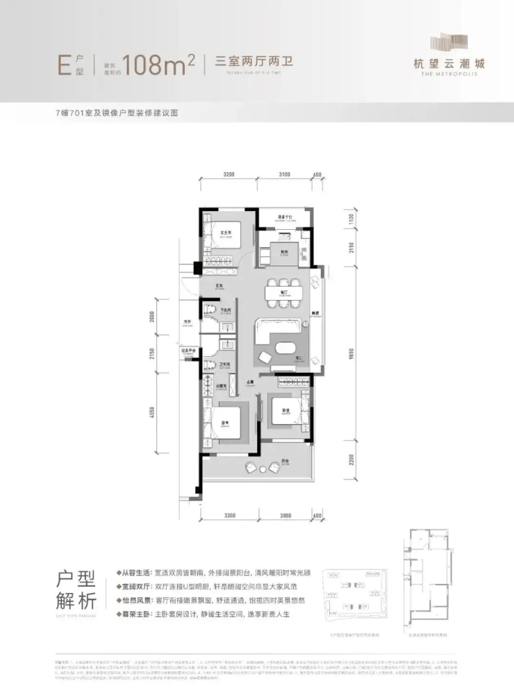 总价约290-450万左右都有,刚、改购房者都可以留意。无论是厨房、客厅、还是客厅/卧室双向阳台,它都要明显优于同期市场上同面积段户型,建面约105-108方,三房两厅两卫的格局。无论是各生活空间的尺度感、还是功能的格局设计,融创都充分发挥出了品牌的实力优势。