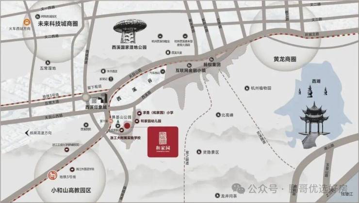 地处西湖和西溪湿地两大国家5A级风景区之间,北隔天目山路与西溪湿地风景区相望,南与西湖风景区隔群山相连,兼得都市烟火与自然静谧。