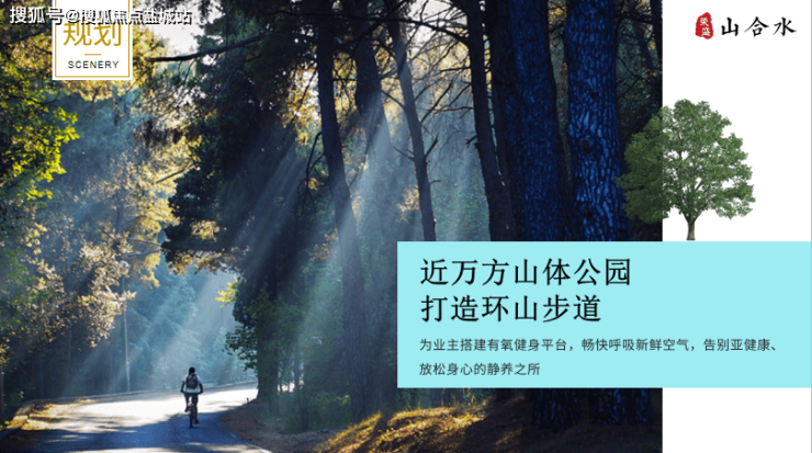 通过5A级造景手法“社区即是景区”打造两路、七带、二十四节点一步一景,项目南侧一座近万方的山体公园打造环山步道,为业主挥别亚健康、享受有氧生活创造完美空间。