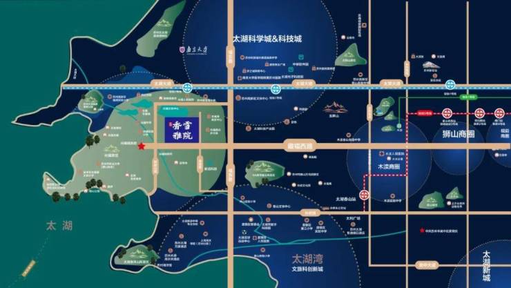 香雪雅院位于藏福西路与福锦路交汇处西北侧,北接科技城,身处风景区,北侧毗邻片区核心苏州科技城,距离太湖国家旅游度假区仅5公里之遥,旨在建设光福镇高品质人文住区。