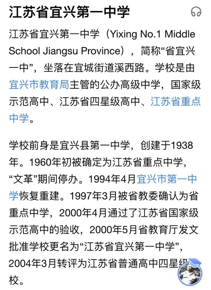 江苏省宜兴第一中学:江苏省重点高中,本一达线率72.55%