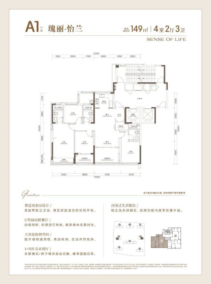 加上南向约13.7米的超大面宽,尺度感比市面上多数160方户型还要阔绰。