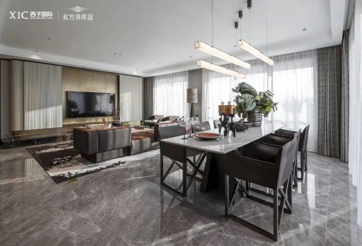 要谈尺度,无论是190㎡的上叠还是下叠,餐客连厅达到近40㎡,再配合大面积落地窗采光,空间的尺度感扑面而来。这样的餐客厅尺度,在同类产品里(200㎡以下)已是最大。