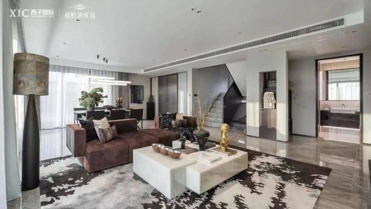 190㎡叠墅上下两层之间动静分区,长者与年轻一代可分层居住,同时也能让待客等公共空间和隐私休憩空间做到完全分离,居住的私谧性与奢适度层层叠加。