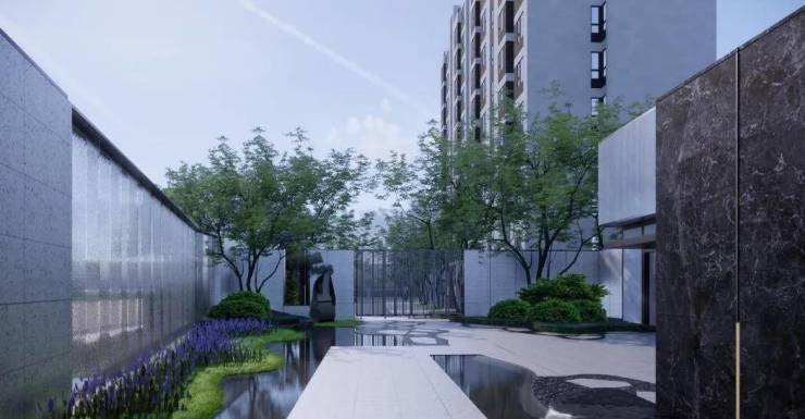 酒店式社区主入口,深色大理石花纹,低调而不失高级,彰显优雅品味。