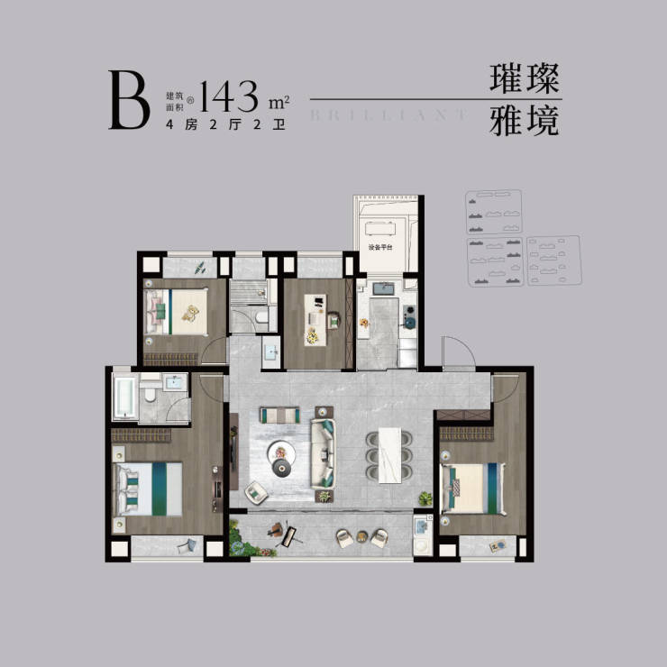 【宽奢四室】南北通透4房,家人独立房间,启幕品质人居