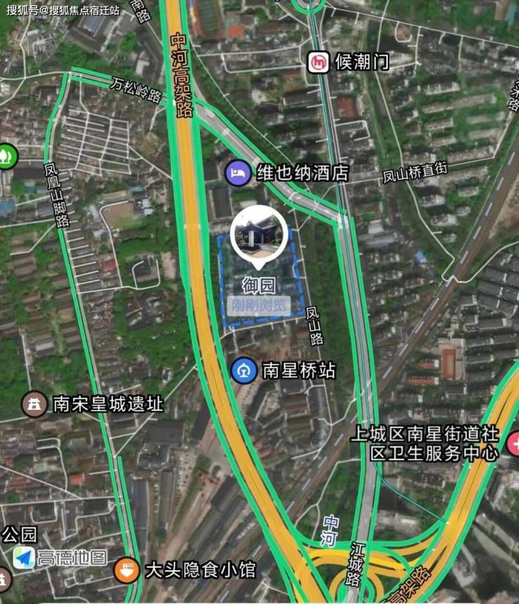 从区位来看,御园位于中河高架东侧、凤山路西侧、馒头山路北侧,紧邻南宋皇城遗址;附近有秋江雅院、南星公寓等一众居民区。