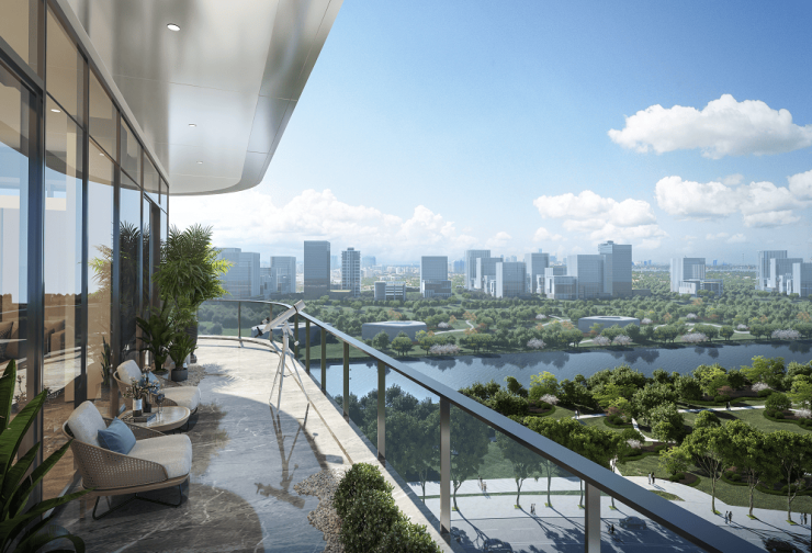 大尺度阳台搭配江一云境大面积玻璃栏杆设计,空间与光、风景无界融合,居住舒适度极佳。