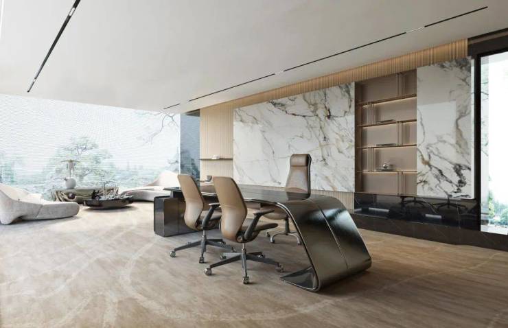 2-3层是精英办公场域,约3.8米层高,空间通透,作为点睛之笔,竖向垂直花园和顶楼“取景框”,让花园绿植延伸至眼前,目之所及,青绿怡人,灵感涌现,从容开阔。