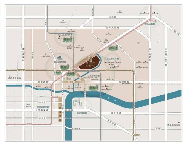 项目择址上海虹口内环内,周边醇熟资源环伺,揽高端商业、健康医疗、文化地标、星级酒店等丰盛配套,于城央之上掌驭繁华,醇熟生活便利尽得。