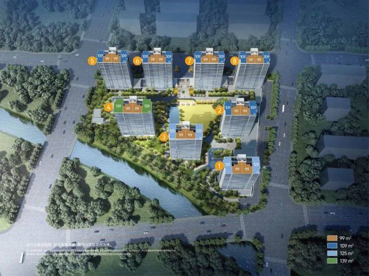 总占地29926㎡,总体量576户,物业类型8幢19F高层住宅,产权年限70年,绿地率35%,容积率2.2⭐,层高3米,花毛坯价 享精装房奥体旁·单价约22850元/㎡起,建面约99、109、125、139㎡公园美宅 稀位争藏中