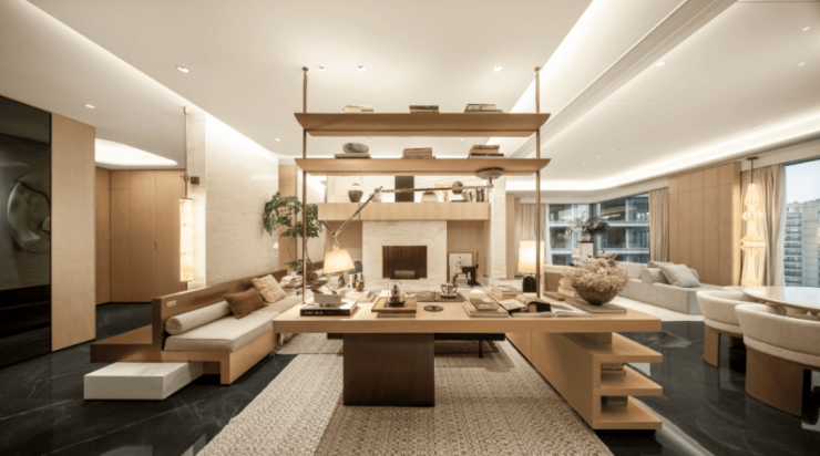在绿城·凤咏朝阳,它被拆解为一系列可感知的细节:约300+㎡的奢阔尺度,让空间不再是面积的堆砌,而是生活场景的自由舒展。国际大师团队执笔的东方美学,将“摩登”与“东方”融于肌理——一石一木的纹理,是时间的笔触;金属与石材的收边,是匠心的温度。