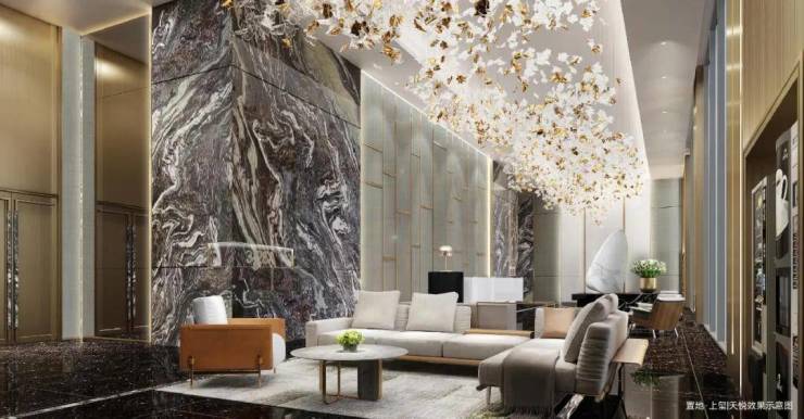 匠心打造酒店式入户大堂、精装地库及全装修公区,以专属的礼仪尊崇感迎接业主归来;大堂墙壁选取雕刻大理石,采用艺术玻璃、金属造型板、皮革硬包及木饰面材质,让室内场景的隐奢感呼之欲出。