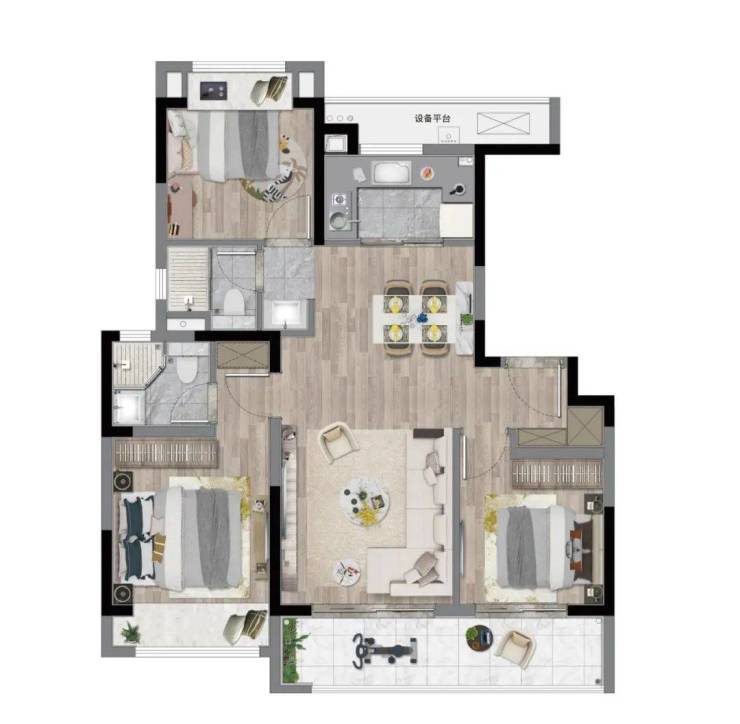 建面约97㎡的起步户型,奠定了小区纯改善的基调;最大建面约264㎡的叠墅,适合多胎家庭、三代同堂。