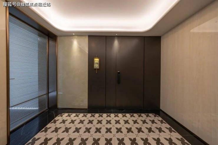 宸云的电梯厅很大,有接近12个平方的电梯厅,独门独户。比较创新的是,它把电梯厅的地面和玄关做了统一,地板颜色是一样的,这是设计上的小亮点。