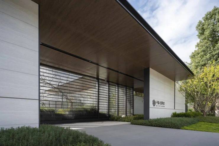 The background façade of the entire atrium is simple and clean and unified, and the design language of the water feature wall continues to unify the building façade, and it is also the best point for viewing the entrance of the sales office;