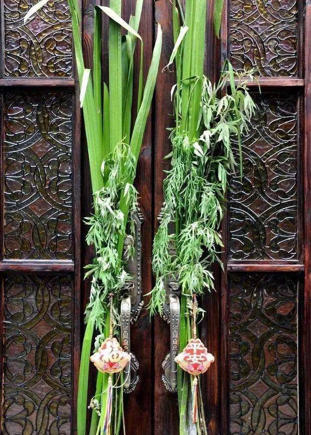 端午节在门口挂艾草、菖蒲(蒲剑)或石榴、胡蒜,都有其他原因。通常将挂艾草、菖蒲、榕枝艾、榕、菖蒲用红纸绑成一束,然后插或悬在门上。