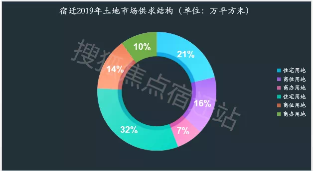2019年宿迁新增商住办用地共计34宗,其中涉宅用地22宗,占比65%
